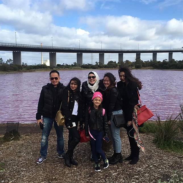 3. Sarita dan keluarga sempat mampir ke Westgate Park, danau garam unik berwarna pink di Melbourne.