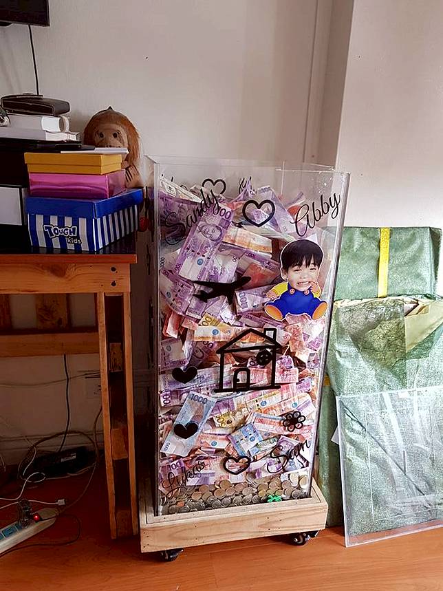 Keluarga asal Filipina ini justru menabung di sebuah kotak kaca besar setinggi meja.