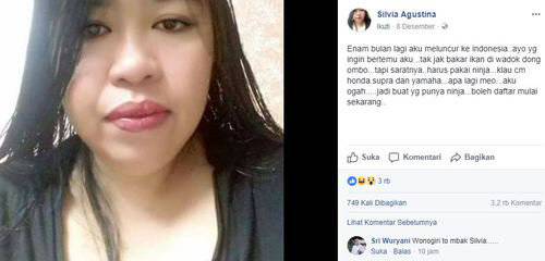 Wanita ini mengaku bernama Silvia Agustina. Dia mengabarkan akan segera pulang ke Indonesia. Namun tak bisa sembarangan orang bisa menemuinya.
