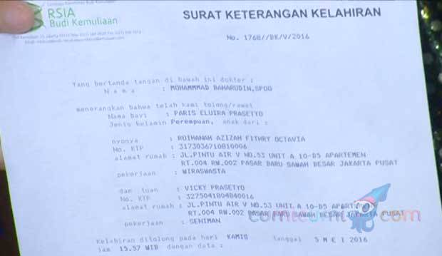 Tak hanya mengaku punya anak, Vivie bahkan menunjukkan surat keterangan lahir buah hatinya, tertanggal Mei 2016 dengan nama ayah Vicky Prasetyo. Vivie mengaku setelah Vicky dekat dengan Angel Lelga, ia tidak lagi menanyakan anak dari buah cinta mereka.