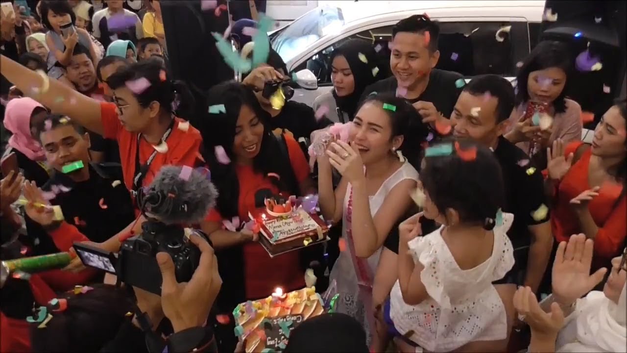 Suguhan dua kue tart, aksi sepasang Ondel-ondel, dan aksi Barongsai membuat perayaan ulang tahun dari para penggemar Ayu Ting Ting menjadi pusat perhatian para pengunjung pusat perbelanjaan tersebut.